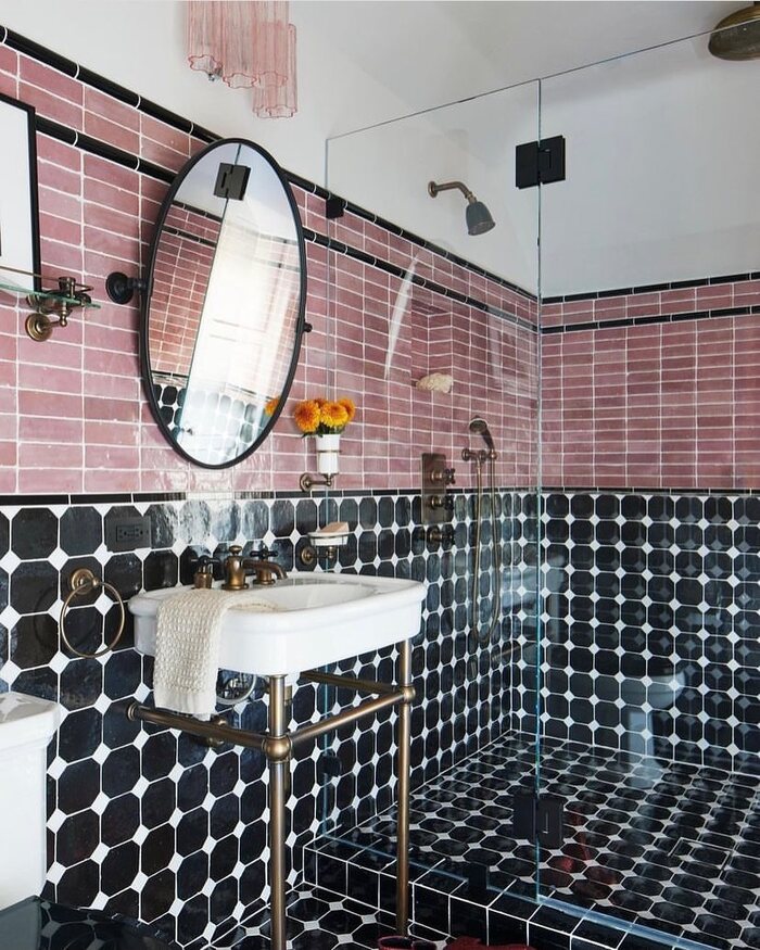 While I was grabbing these screens, my thumb slipped and I hearted my plumber’s vacation photo from 2018. He texted, “you ok?” I replied, “yes, just collecting 10+ black and white bathroom tile inspo for Monday,” and he sent me a grout coupon. True story. Moral: even pros get messy, but great bathrooms come from playful research and a little courage.