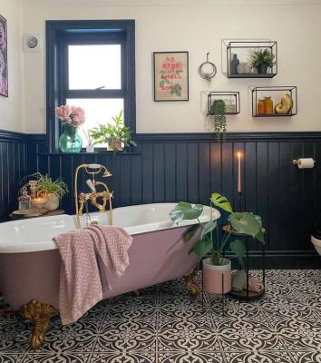 black and white tile floor bathroom