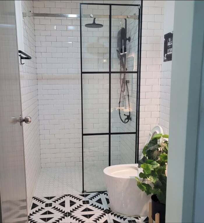 Hex border shower with bench