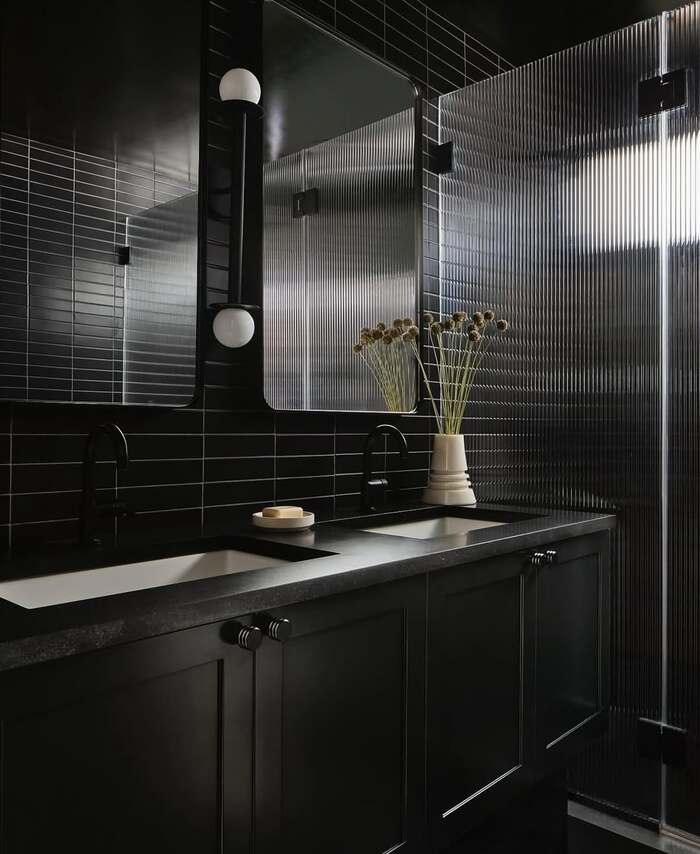 My favorite trick from Instagram yesterday was pairing ribbed glass with skinny horizontal joints. The rhythm feels sleek. A 10+ black shower tile backdrop lets that fluted glass glow like moonlight. If you’re nervous about cleaning, choose a satin glaze. It hides water spots better than glossy black shower tile while still looking rich.