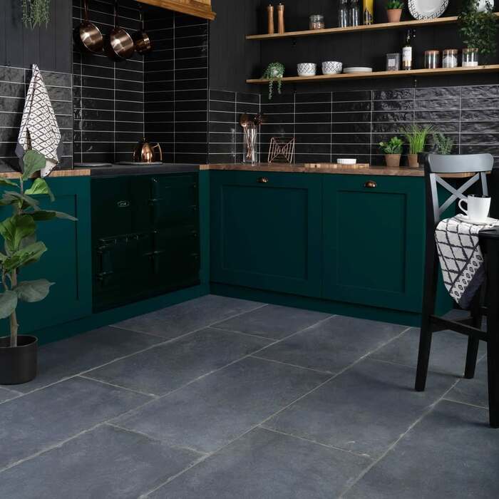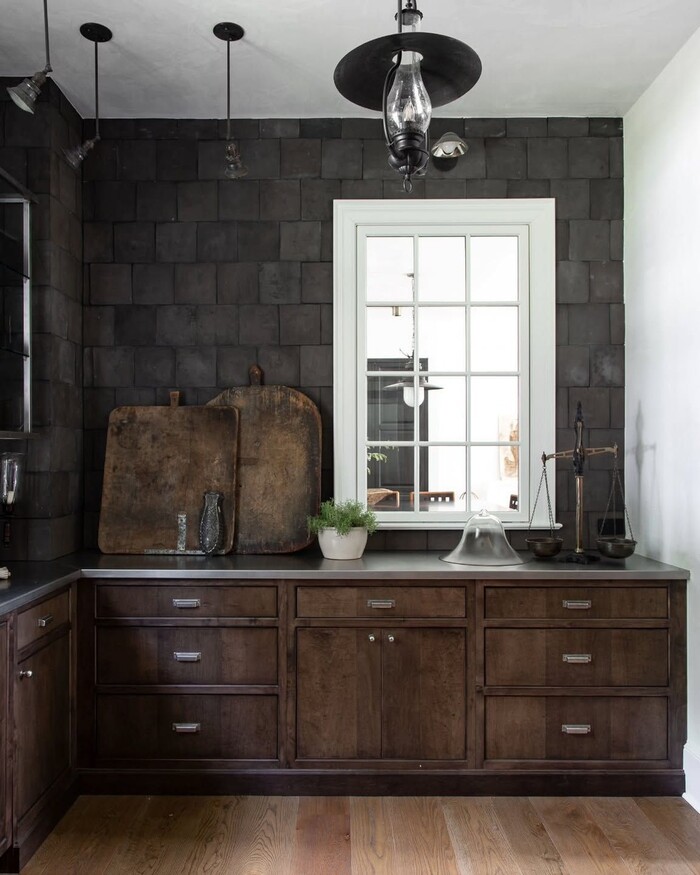 1) Charcoal tile as a backdrop for the table.