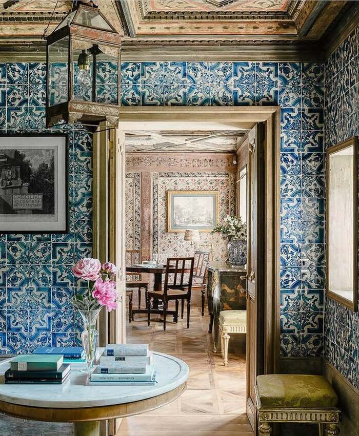 The ornate walls feel historic, like postcards from a trip you still brag about. When I use vintage style blue-and-white tiles, I keep furniture lines quiet and repeat cobalt in one vase or lampshade. Not five. Let the walls be the star. If your home is newer, mix matte and gloss tiles to fake age and soul.