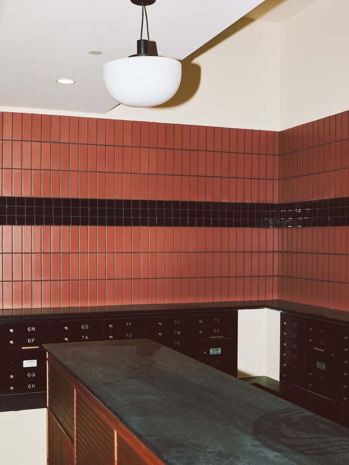 This space is basically a master class in rhythm. The walls use skinny vertical terracotta planks with a single band of small black tiles around the middle. It feels retro and also super clean. A white globe pendant and matte counters stop it from getting heavy. If you copy this, measure your stripe height against eye level. Too low and it looks like a belt that slipped. Too high and it chops the wall. Mid chest works best for most rooms.