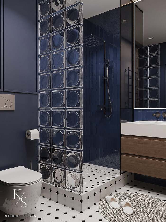 The navy shower proves something I say on job sites all the time. Dark field tile plus a clear glass tile wall makes the light look brighter. It’s sneaky but it works. Add a rain head, keep the grout tight, and let the glass tiles do the sparkle. If your room feels flat, try ribbed glass tiles in the partition so shadows dance. It’s theater without shouting. Another win for the 10+ glass tiles bathroom playbook.
