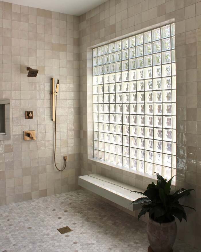 The grids set next to a soaking tub might be my dream Sunday. The glass tile window acts like a soft filter, turning harsh daylight into calm glow. If you live on a busy street, swap to frosted glass tiles or even ribbed glass tiles. It keeps silhouettes fuzzy while pulling in that precious light. Add one plant on a stool, keep the rest clean. Don’t shove seven plants in there. I tried it once and felt like I was bathing in a jungle movie.