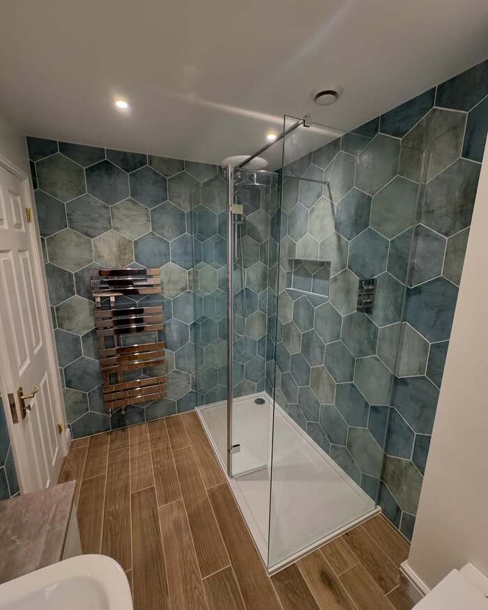 Confession time. I try to quit hex now and then. I sample squares, zellige, even fish scales. But hex fits modern spaces and old homes without feeling try-hard. It nods to history while staying fresh. When a client doesn’t know what they want, a 10+ hexagon tile bathroom direction solves it nine times out of ten. You can push it coastal, farmhouse, minimal, moody. A hexagon floor tile bathroom is as comfortable with brass as it is with matte black.