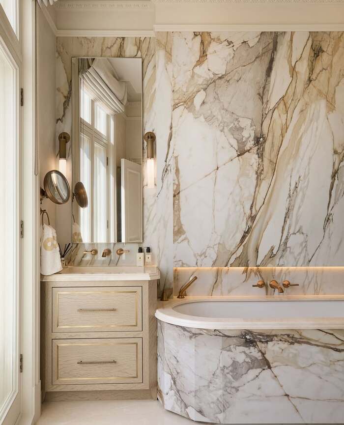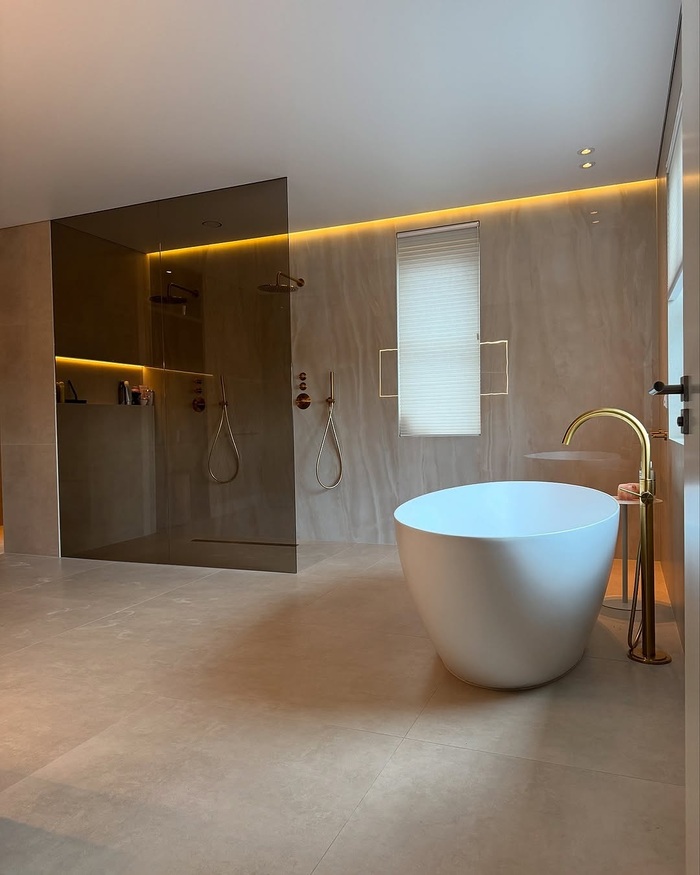 If you’ve got a drop-in tub, wrap the deck and the adjacent walls in the same big format. The continuous surface reads calm. Think large bathroom tile shower treatment where the tub isn’t an extra piece, it’s part of the architecture.
