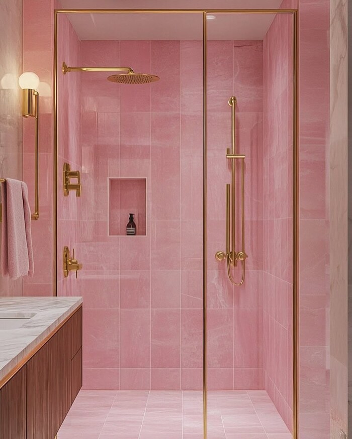 Plan edges early. Bullnose or metal profile. Messy edges ruin even the best pink shower tile.