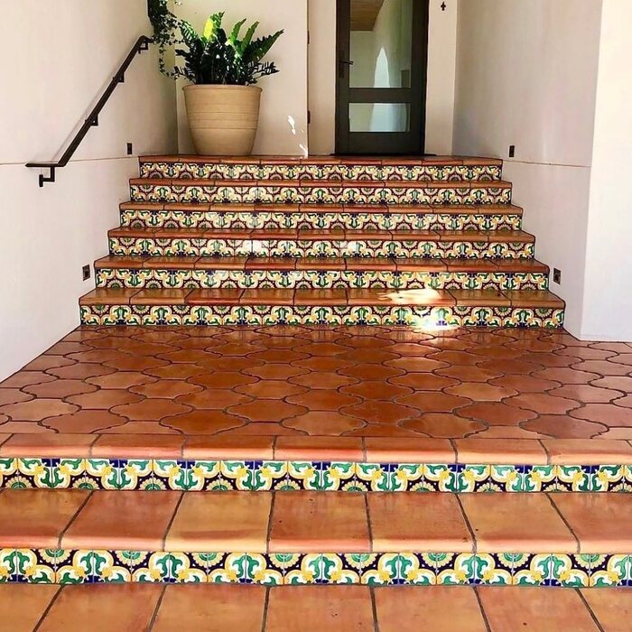 Warm terracotta makes evenings feel golden. The patterned stair faces guide your eye up like music beats. For weather, choose frost-rated clay or porcelain that mimics it. I’m picky about slip. Add a clear anti-slip sealer on the tread. Your future ankles will thank you. A timeless tiled porch that keeps getting prettier with age.