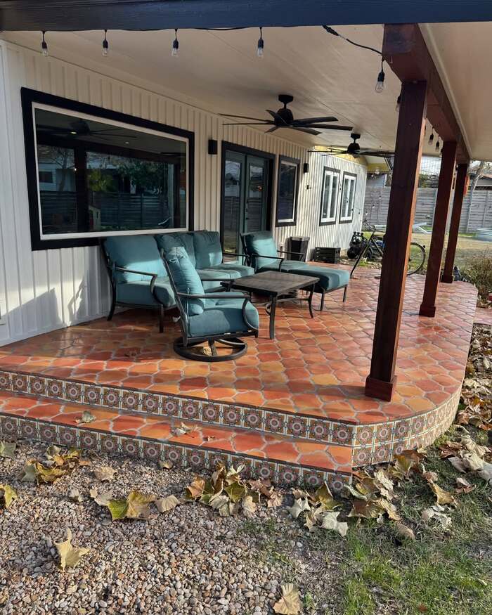 Quick confession. While saving these, I spilled oat milk on my phone, hit rewind on a porch reel, and the algorithm thought I needed only door mats now. I had to rescue myself with a fresh search and a snack. But that chaos is how I found the petal pattern and the curved terrace, so no regrets. Social media, you’re wild, but you feed my porch tile ideas folder on the daily.