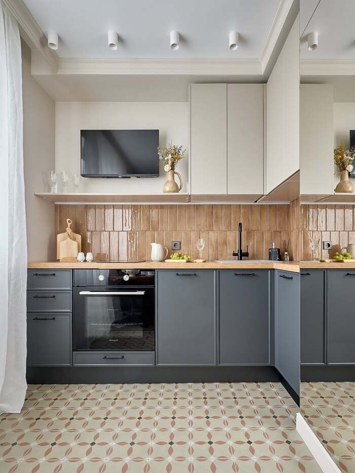 Warm cocoa subway, set vertical, pairs with a sweet patterned floor. If your kitchen is narrow, this tile wall layout pulls the eye up. Choose pencil trim or a clean metal schluter on the ends for a crisp stop. Keep outlets in the same color as grout so they disappear, little hack that always works.